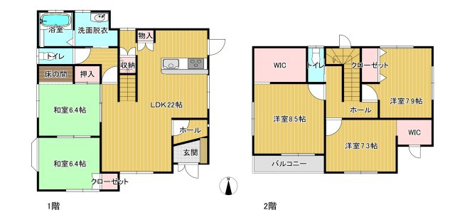 LDK 22.0帖 / 和室 6.4帖 2室 / 洋室 7.9帖 / 洋室 7.3帖 / 洋室 8.3帖 / S(納戸) 3.0帖 / |