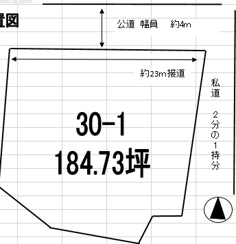 | 接道状況 | 一方 (南側 公道4.0m 間口23.0m) | ||