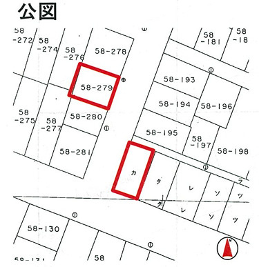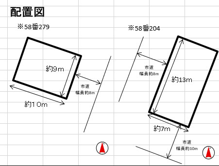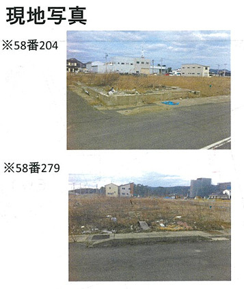学区:渡波小・渡波中 ※地番58-204→99.47㎡(30.08坪) ※地番58-279→98.30㎡(29.72坪) 上記、土地面積は2筆分合計になります。 |