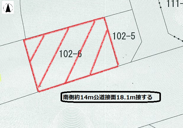 | 接道状況 | 一方 (南側 公道14.0m 間口18.1m) | ||