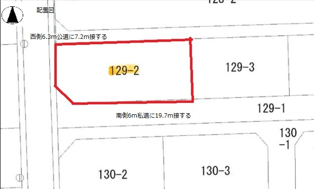 | 接道状況 | 角地 (西側 公道6.3m 間口7.2m) (南側 私道6.0m 間口19.7m) | ||