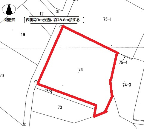 | 接道状況 | 一方 (西側 公道3.0m 間口28.0m) | ||